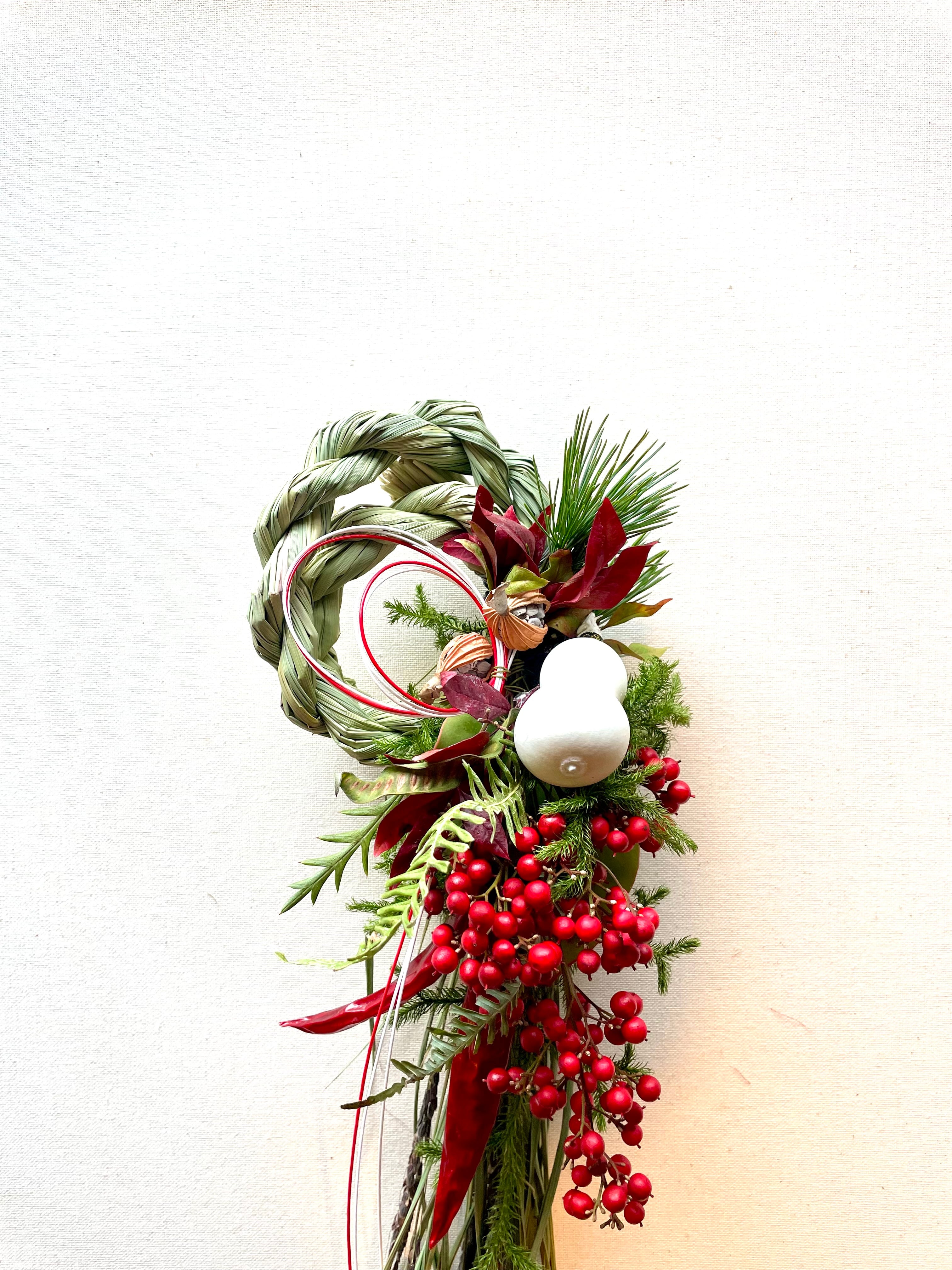 花材…黒米のしめ縄、南天、ひょうたん、五葉松etc