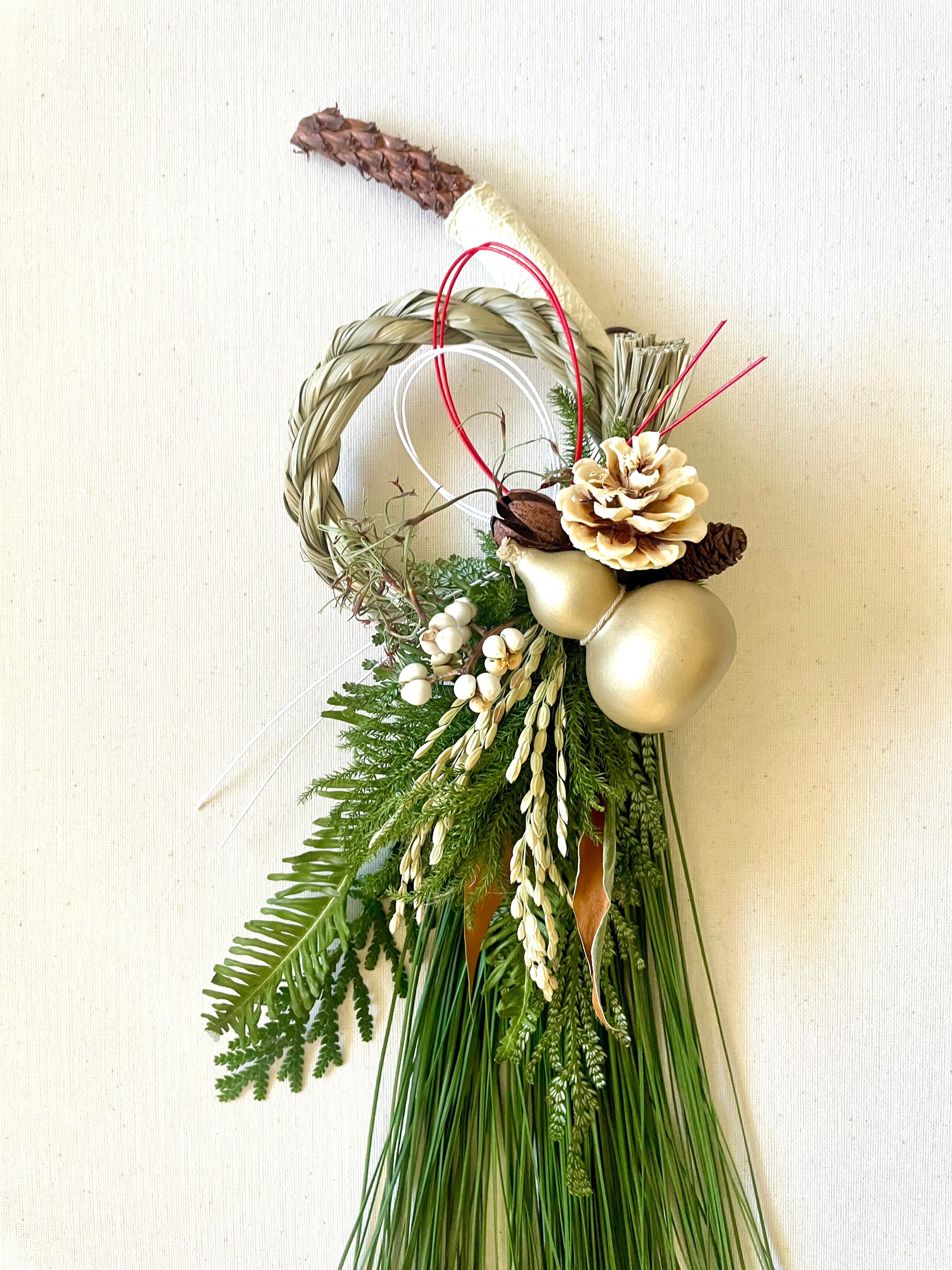 ○花材…大王松、松かさ、ひょうたん、稲穂、アスナロetc